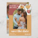 Fånga själva kärnan i din bröllop-resa med vår Elegant Watercolor Flowers Spara datumkortet, perfekt för de strålande säsongerna sommar och vår. Det här exquisite-kortet visar handmålade vattenfärgblommor och har ett bågformat foto av det vackra paret, kompletterat med enkel typografi av eleganten för en tidlös beröring. Färg-paletten, som innehåller senapspets, gult, bärröd, brun och grönt, ger en modern och färsk estetisk bild in i designen. Med detta Spara datumkort, som är intressant söt och mycket unikt, lovar man att lämna ett varaktigt intryck på gästerna och ange perfekten för ett minnesvärt firande. Välj sofistikering och se till att din speciella dag är oförglömlig med denna charmerande design.