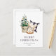 Detta mysiga, rustiska helgdag-vykort har en vattenfärgad illustration av bondgårdar stil, ett miniatyrhus Julgran och ett litet hus. Ord "GOD JUL" visas i grått serif brev som koordinerar med konsten. Lägg till familjens namn och året i charkol grått italics och din returadress på baksidan.