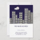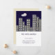 Vattenfärgsannonsering med en illustration av en nattlägenhet i himmel byggnad. Anpassa texten med din egen. Illustrerad och designad av Patricia Alvarez.