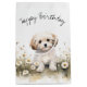 Vattenfärgsvalp i pudel i vit daisy för födelsedag. Text kan redigeras.