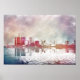 Det är ett digitalt förbättrat fotografi av Detroit Skyline som har gjorts för att se ut som en vattenfärgsmålning av Detroit.