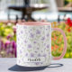 Få ut din vardag med vår charmerande blommigt kaffe mugg, perfekt för att du ska få en liten bit av naturen i din dagliga rutin. Det här vackra mugg har ett viskigt mönster av handdragna blommor i mjuka, pastellhuvar som framkallar skönheten i en vår-trädgård. Den stabila keramiska konstruktionen säkerställer hållbarhet, medan det bekväma färgade handtaget och fälgen tillför en söt, feminin beröring. Personlig med ett namn i ett elegant-skript, gör mugg en tankfull gåva till en vän, älskad eller till och med dig själv. Perfekt för kaffe, te eller din favoritdryck i hetten... mugg har 11 kilo ren bliss. Dishwasher och mikrovågsugn säker, det är lika praktiskt som söt. Njut av varje skepp i stil med den vackra blommigten mugg.