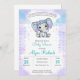blommigt för barn med elefantungor Barn Shower Inbjudan till elfinsknappen med vattenfärg har en söt elefant, ett baby blue hjärta. Idealisk av en kommande pojkes elephant themed babydusch.