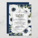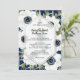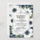 Elegant svartvit anemonblommor och löv vattenfärg på marin blå bakgrund och bröllop-ceremonin i chic på ett genomskinligt vitt diamantöverlägg. MATCHING-objekt i vår butik.