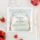 Dessa romantiska och förtjusande napkins har ett vattenfärgsfärgsskogstema. Bakgrunden är ett fet blå himmel med grönt gräs. En saga inspirerad, träd gren-båge placeras i centrum med namnen av paret tryckt under. Du kan anpassa blöjorna till din egen namn eller annan anpassningsbar.