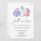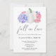 Fall i Kärlek - inbjudningskort för möhippan dekoreras med en vattenfärgad vit pumpa, dekorerad med vattenblommor, blåviolett, rökig rosa färg.