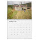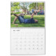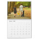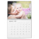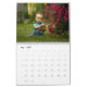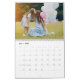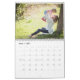 Vattenfärgskalender. Knip, persika, blek blå och grönt på vit bakgrund. Familj Namn och år. Varje månad har du ett fotobyte.