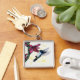 Vattenfärgsfantasi flygande hummingbird och orchid fyrkantig silverfärgad nyckelring
