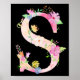 Watercolor Blommigt Brev S Poster av vattenfärgsartisten Cheng Jing. Brev S-bakgrunden är rosa med vattenfärgade blommor och dekorativa löv och bär. Det är perfekt för Nursery-konst, Tonåring rumsdekoration och gigantisk gåva. Bakgrundssvart. Bakgrunden färg kan vara personlig.