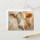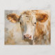 Ett sött vykort för koma älskare med en vit och brun ko porträtt i vattenfärg. Den här teckningen skulle vara ett utmärkt komplement till en vykortssamling som används för skräppost eller andra hantverksprojekt.