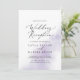 Denna vattenfärgsfärgade lila bröllopsinbjudan är perfekt för en modern efter-fyllnadsfest. Den enkla och klassiska designen har en stänk av pastellavendel lila vattenfärg med minimalistisk elegant stil. RSVP-kort säljs separat, eller så kan du lägga till RSVP-information på baksidan av kortet.