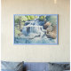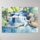 Det här är en vattenfärgsmålning som skildrar ett kaskadande vattenfall, som läggs i ett landskap med stenar och träd. Ta en närmare titt på teckningens detaljer.