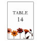 Förbättra din händelsedekalor med bord-kortet för blommigt med vattenfärg och med fet röd färg och orange med solnedgångshus. Perfekt för bröllop, mottagningar eller speciellt firande.