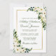 Vattenfärgsfärgad Blommigt Grönt White Guld Bröllo Inbjudningar