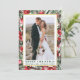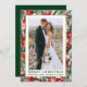 Modern Elegant Watercolor Tallar Winter Grey med Burgundy Red-julprydnader, Gräs Cones och Holly Berries God jul Newlyed Photo Helgdag Card - Guld Ram