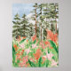 Vattenfärgsfärgad Rosa Coral Blommigt Meadow on Mo Poster