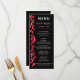 Elegant lämnar målad i skuggor av shock rosa till rött och orange på en svart bakgrund med information om din bröllopsmottagningsmeny i chic. MATCHING-objekt i vår butik.