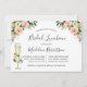 Modern Elegant Watercolor Coral Blommigt Möhippa Luncheon-inbjudan innehåller persikofärgat ro, vita blommor och botaniskt grönt. Champagneglas med blommor. Trendig Calligraphy Script.