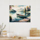 Vattenfärgsfärgning Canoe Sjö Dock Mountain 5:4 Poster
