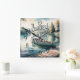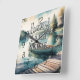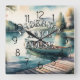 Vattenfärgsfärgning Canoe Sjö Dock Mountain Fyrkantig Klocka