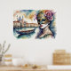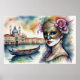 Vattenfärgsfärgning Målning Voman Venetian Mask IV Poster