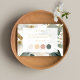 Det här vackra blommigten för klädkodning i bröllop har en illustration av vattenfärgen lövning, ett contemporary i guld och 4 färg i populära pastellhylsor i bröllop. En glatt visning blommigt blommar på kortets framsida ger dig en ungdomlig elegans, luxe stil, till din stationära bröllop. Baksidan innehåller par initialer mot en vit bakgrund. Tips! Om du ändrar färger med verktyg i Editing bör du tänka på att ändra fyllningen och gräns färg för varje cirkel.