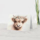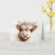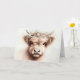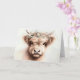 En fluffy höglandskos blickar framåt, försedd med en känslig blomma krona med ro och löv
