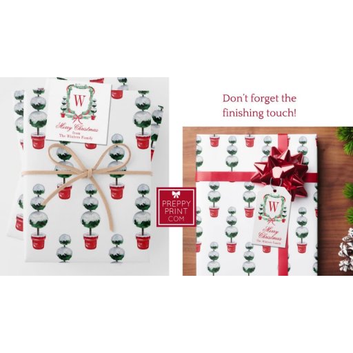 Watercolor Christmas Topiary Monogram CrestDesignad av Ann