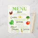 Anpassa den här menyn i party med egna menyalternativ. Det är en roligt- och en rustik meny med vattenfärgsfrukter och veggies och ett handskrivet stil-teckensnitt. Perfekt för avslappnad tillfälle!