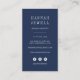 affärskorten för lodrät av elegant för ditt kustbaserade företag har en illustration av vattenfärgsfyr i nautiska blues och gröntar, med ditt namn och/eller ditt företags namn under. Anpassa den omvända sidan med din kontaktinformation, inklusive tre medieikoner i social och en mall fält för ditt användarnamn i social, i vitt på marint blått.