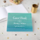Vattenfärgsgäst bok för grönt av tropisk Elegant på strandbröllop med teckning på kärlek-hjärtan. Skripttypografi för snyggt för namn av brud och groom plus datum för giftermål. En del av den vackra matchande uppsättningen för färg samordnade material, dekorationer och party. Söt aqua/turkos blue färg med romantisk interlåsande logotyp av kärlek-symbolen. Perfekt för sommarbröllop och exotiskt destinationsbröllop.