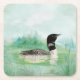 Vattenfärgsgemensam Loon Bird Nature Art Underlägg Papper Kvadrat