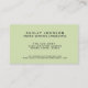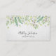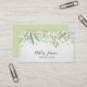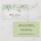 Ett vackert modernt affärskort med namn eller titel i en chic avslappnad med handskript och sans serif-typografi, som ställs in mot en papper bakgrund med vit bra och som fylls av en grön löv-gröneneri med lush vattenfärg. På baksidan av kortet finns kontaktuppgifter som ställs in mot en ny grönt som är i samklang. Detaljerna har utformats noggrant för att vara enkla på öga och göra det lätt för kunderna att snabbt hitta den information de behöver.