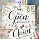 Ett öppnat och stängt butiksskylt med tre angivna hål-stödlinjer för ett hål-slå. Sätt ett vackert band eller en fin jute-sträng för att lägga det här tecknet på en sughanger krok i kopp på glasluckan eller i butiksfönstret för att informera dina kunder om att du är öppen eller stängd, i stil. Stödlinjer från hål kan tas bort i Design Verktyg.