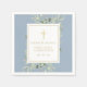 Med löv av eucalyptus i skogsområden med crucifixen guld i elegant kan denna snyggt av dammig i den blå heligan napkin vara personlig med dina speciella firande-uppgifter i modern guld typografi. Designad av Thisisnotme©