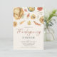 En modern och elegant thanksgiving middagsinbjudan med handmålad pumpa paj, kranbärssås, backad kalkon, grönsaker, traditionella rätter och inslag som sätter upp bord.