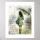 Hoppet i regnet poster med en vattenfärgsscen med en kvinna med ett paraply som går i regnet, parad med ett tänkvärt citat om den evokativa scenen av hopp. En mjuk estetik med en färg-palett med muterade gröntar, gråtoner och jordtoner som skapar en reflekterande stämning. Ett citat från författaren Jennifer Rush: "Och om det hade en scent, skulle det luktar som vår, som regn, som något nytt och levande." visas till lämnat om illustration i färg för att matcha bilden. Visas i storlekt 16x20-lodrät med projektionsdukar och trä ram för illustrationsändamål. Svåra storlekar och inköpsalternativ finns tillgängliga med eller utan ramar och projektionsytor.