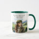 St. Patrick's Day och inspirationslandet mugg, med en vattenfärgad illustration av den irländska landskapet med lush grönt backe, en mjuk ström och en irländsk stuga i bakgrunden och en ung irländsk kvinna med ett platt grönt, ett tweed jacka och en ljusscarf, som framkallar ett traditionellt irländskt utseende. Hennes blomstrande hår och självsäkra uttryck fångar både styrka och ära centrerat under ett inspirerande citat som lyder: "Framför allt, djupt i min själ, är jag en irländare i tuffen" - Maureen O'Hara. Perfektens gåva till St. Patricks dag eller vilken dag du vill visa ditt irländska pride.