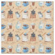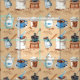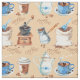 Vattenfärgat kaffe mönster med en påse kaffebönor, en kaffekvarn, kaffe kopp, turkisk kaffebryggare, kaffekanna och en kopp kaffe kopp.