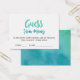 I den här kalligrafin med vattenfärg kan man se hur många kyskkort som är en roligt för en möhippa med tropiska strandteman. Fyll en burk med Herseys Kisses och be dina gäster gissa hur många candies är i burk. Det närmaste svaret vinner ett pris! Roligten och den energiska designen har ett söt teal-grönt och vattenblått vattenfärgsskript.