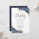 Lägg till en liten elegans i bröllop med denna vackra inbjudan med marinblå blommigtar och en fin kalligrafi. Perfekt för par som vill ha en klassisk men konstnärlig design, den här inbjudan fångar romantik och sofistikering. De mjuka accenterna och det flytande skriptet skapar ett förfinat och inbjudande utseende som är perfekt för bröllop under vilken säsong som helst. Impress dina gäster med den här fantastiska och minnesvärda biet.