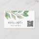 Detta moderna gröna affärskort är perfekt för småföretagare, konsulter, stilister och mycket annat. Den botaniska designen har vattenfärgsfärgad löv i skuggor av grönt- och snyggt-skripttypografi. Anpassade enkelt med information och QR-kod. Använda Verktyg i Design om du vill ändra texten storlekt, stil eller färg. Ursprunglig vattenfärg © Michele Davies.