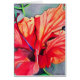 med originalkonstform från en vattenfärgsmålning av röd och orange genomskinlig hibiscus tropisk blomma. Den här blommigten är i fokus, visar en kompakt färgningsteknik med vattenfärg, visar den ljusa, färgstarka, botaniska inspirerade designen.