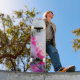 En fantastisk vattenfärgsillustration med körsbärsblom i rosa, lila och krämfärg.