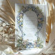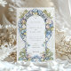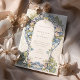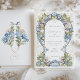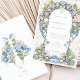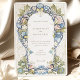 Den här fina bröllopsinbjudan innehåller en handmålad Art nouveau-design i mjuka vattenfärgtoner, perfekt för par som vill ha en finare och konstnärlig beröring. Framsidan visningar en romantisk blommigt fylld med blått, kräm, och mjuk grönt, som är sammanflätad med snurrande löv och gyllene scrollsar som skapar en vintage botaniskt ram runt bröllop. Utgiven i ett känsligt painterlyt stil, återger blommigtarna och lövningen den elegans som präglade dekorativa konsten tidigt 1900-talet. De raffinerade typografiparen är klassiskt serif typsnitt med subtila moderna beröringspunkter, medan initialer och år är subtilt integrerade i gräns. Kortets baksida kompletterar framsidan med en speglad vapensköld av blommigten som innehåller blåblommor och stiliserade tendrils, vilket understryker elegans och harmoni. Perfekt för romantiska, trädgårdsmässiga eller klassiska bröllop teman.