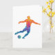 Färgfull illustration av en man som spelar fotboll i vattenfärgen stil. Underbar presentfotboll och fotboll i fläkt