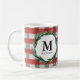 Vattenfärgsutandning och kontrollera den inledande julklappen helgdag mugg. Handskrift. Ett modernt intag av tradition rött och grönt.