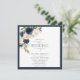 Baserat på vår bästsäljande Inbjudningskort för möhippan har denna vackra, moderna inbjudan från elegant bröllop en bukett av marinblåa och blommor från rosa, inkantad i marinblått. Anpassa dina detaljer som accentueras med vacker, modern, slitad kalligrafi i mjuk mörk mörk form. Kontaktdesigner för matchande produkter. Inbjudningskort för Elegant av upphovsrätt, alla höger reserverade.