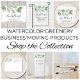 Är din flytta? Låt dina kunder komma ihåg din nya plats och ge dem ge en rabatt med det här kundförmånskortet. Det är dekorerat med botaniska vattenfärgsgreer och säger Nytt adress i snyggtens skripttypografi. Anpassade enkelt med adress. Ursprunglig vattenfärg © Michele Davies.
