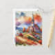 Vattenfärgskyrka på en falldag | Höstblommor Vykort